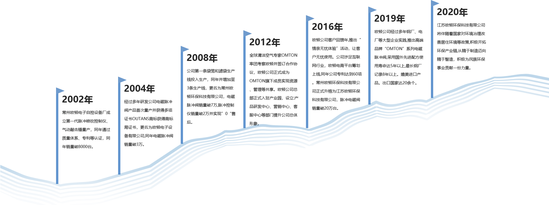 江蘇歐頓環(huán)保科技有限公司是一家專業(yè)從事袋式除塵器配件研發(fā)、生產(chǎn)、銷售和環(huán)保技術(shù)相關(guān)的企業(yè)。公司通過國家相關(guān)產(chǎn)品認(rèn)證企業(yè)、質(zhì)量等認(rèn)證企業(yè),公司擁有袋式除塵器技術(shù)研發(fā)中心、實(shí)驗(yàn)中心、檢測中心等配套實(shí)施。我們以全球科技發(fā)展為導(dǎo)向,2014年通過與國外知名工業(yè)清潔空氣凈化專業(yè)企業(yè)進(jìn)行合作,引進(jìn)先進(jìn)的空氣凈化技術(shù)和先進(jìn)的產(chǎn)生、管理模式,投入大量資金對電磁脈沖閥膜片和除塵濾料產(chǎn)品進(jìn)行研發(fā),并獲得顯著成果,使得歐頓產(chǎn)品在國內(nèi)市場占有一席之地,產(chǎn)品質(zhì)量媲美國外產(chǎn)品,使得歐頓公司在袋式除塵行業(yè)起到跨越性作用。我們的產(chǎn)品包括電磁脈沖閥、脈沖噴吹控制儀、除塵濾袋、除塵袋籠、除塵器專用氣缸、專用配件、電氣控制柜及過濾筒、氣動助流產(chǎn)品等。其袋式除塵產(chǎn)品廣泛應(yīng)用于電力、冶金、建材、垃圾焚燒、化工等行業(yè)。在過去的數(shù)年里,公司的產(chǎn)品和服務(wù)得到了市場的認(rèn)可及肯定,產(chǎn)品出口到數(shù)十個國家。